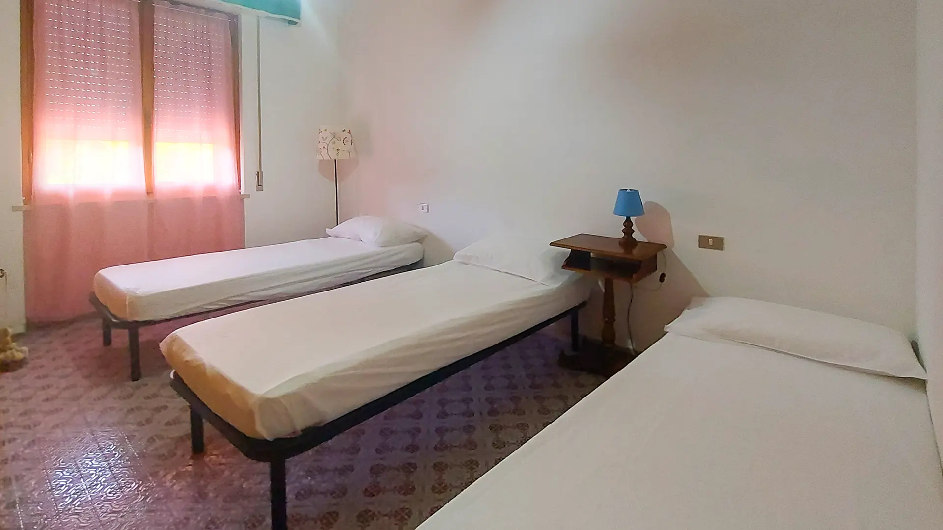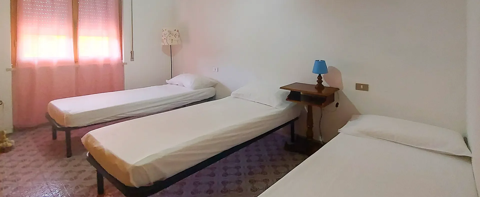 matrimoniale e un letto singolo, l’altra con tre letti singoli, bagno con vasca e un bagno di servizio.