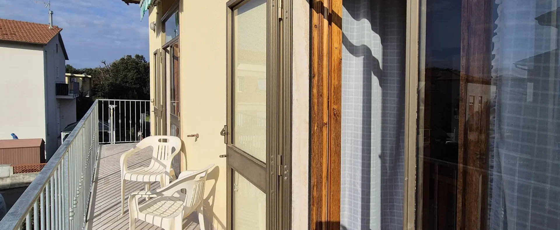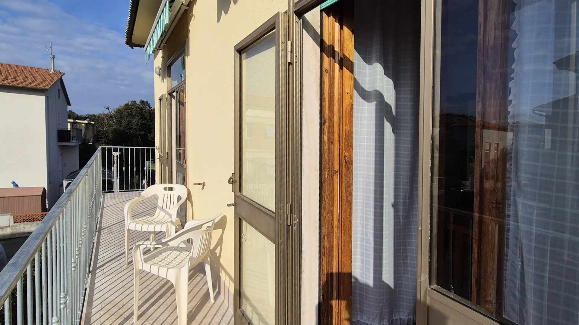 letti singoli, bagno con doccia e balcone. Al piano terra del fabbricato una piccola area verde ad uso